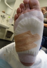 Bandagen må kun sættes fast med plaster, der ikke klæber for fast, f.eks. englehud. Andre mere klæbende plastre eller film sidder for godt fast, og kan rykke filten løs, når bandagen skiftes.