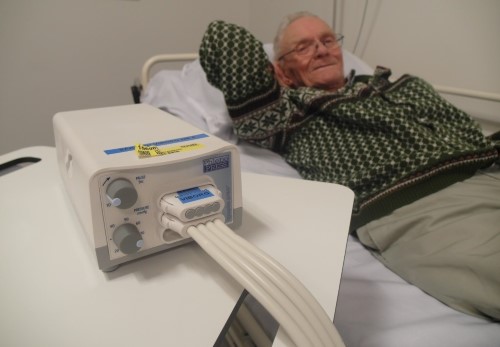 Efter endt behandling slukkes pumpen igen og manchetten kan tages af.