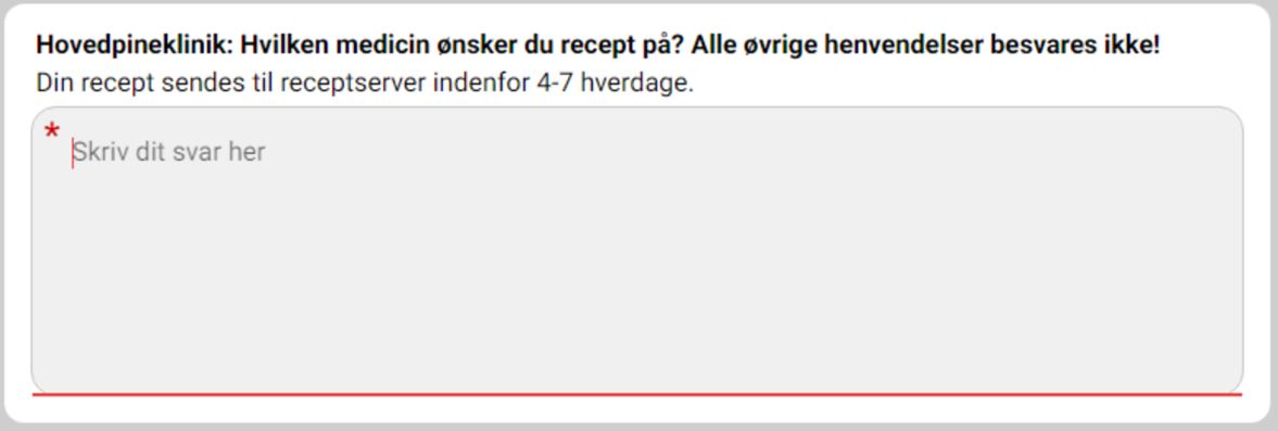 5. Skriv hvilken medicin, du ønsker recept på i det grå tekstfelt øverst på siden.