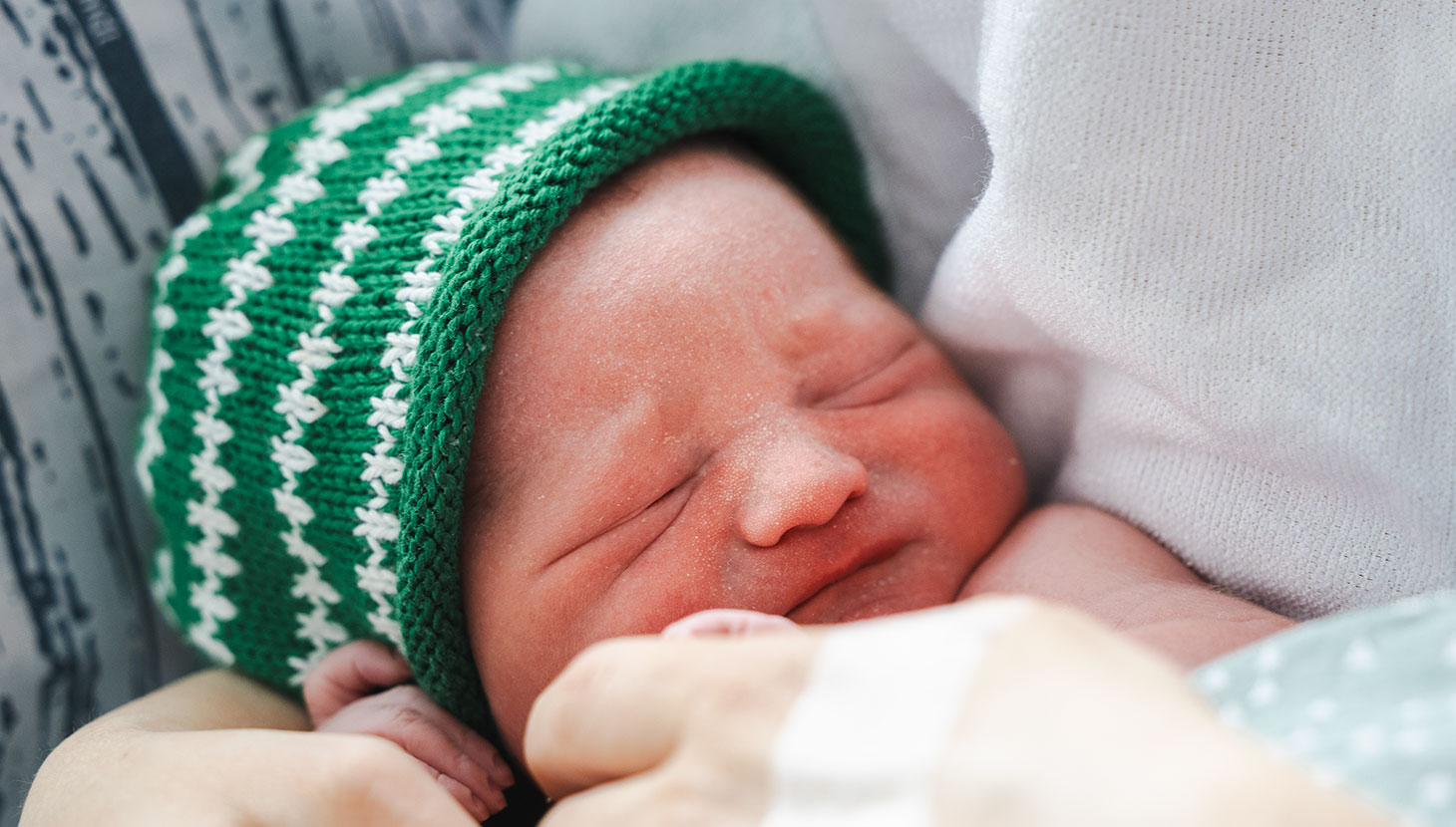 Personalet på fødeafsnittet er opmærksomt på at forklare de nybagte forældre, hvorfor deres nyfødte barn ikke får hue på.