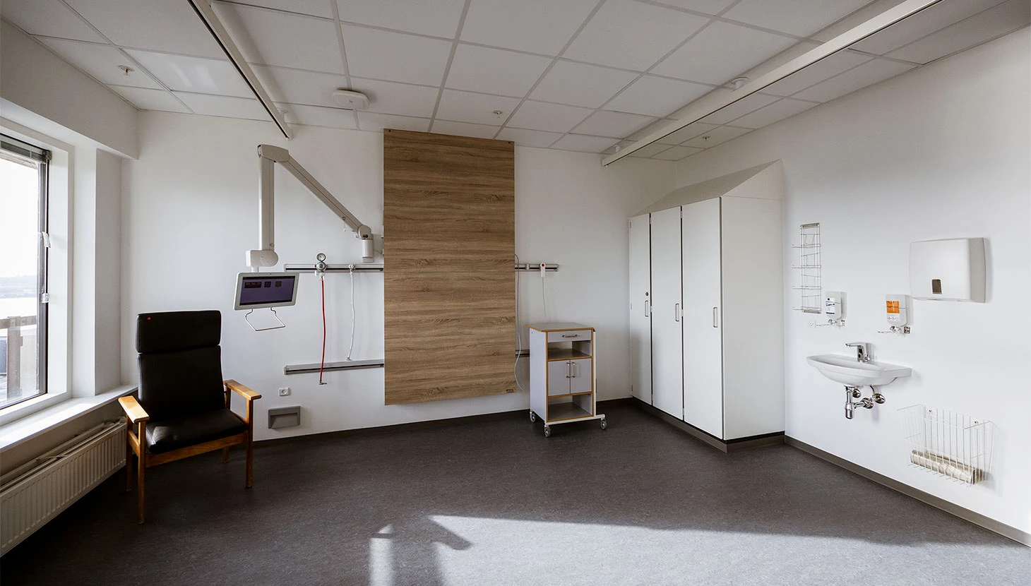 - Samtidig får vi bedre mulighed for at tage de pårørende med som aktive medspillere i patienternes forløb. Både fordi der rent fysisk er mere plads og bedre mulighed for diskretion på de nye en- og tosengsstuer, og fordi vi samtidig får nye teknologiske muligheder, fortæller chefsygeplejerske Betina Funder.