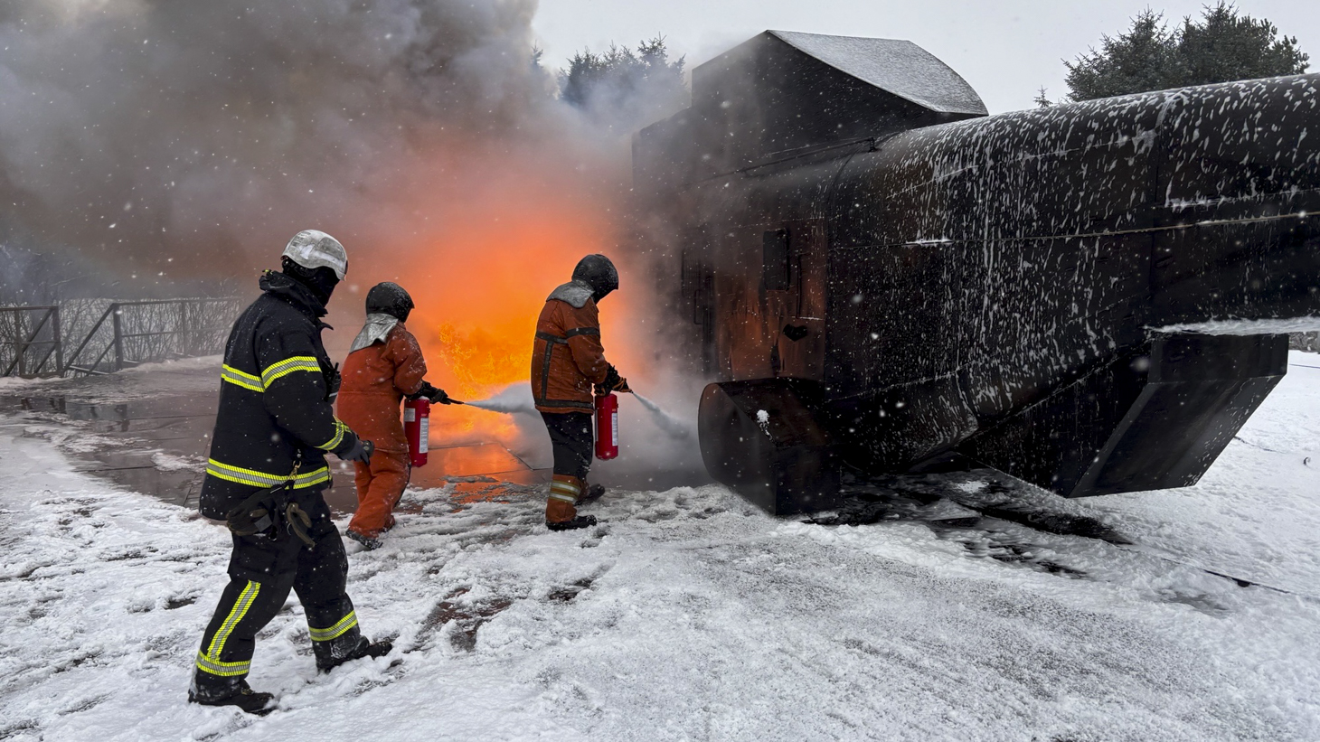 På kurset lærte serviceassistenterne, hvordan de skal reagere, hvis der opstår en nødsituation på helipad’en – for eksempel ved brand, olieudslip eller hvis en patient bliver uventet dårlig.