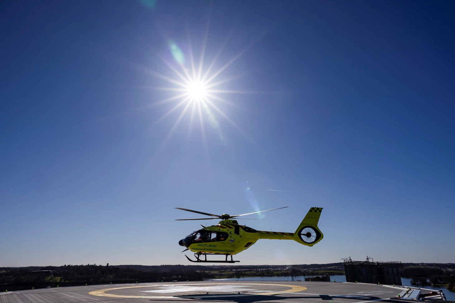 - Med helipad’en kan akutlægehelikopteren fremover lande i niveau med hospitalets 9. etage.