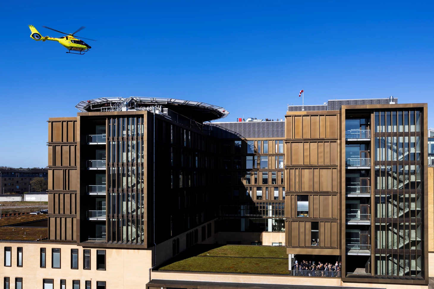 - Fra taget er der direkte elevatoradgang til blandt andet akutafdeling og traumestuer.