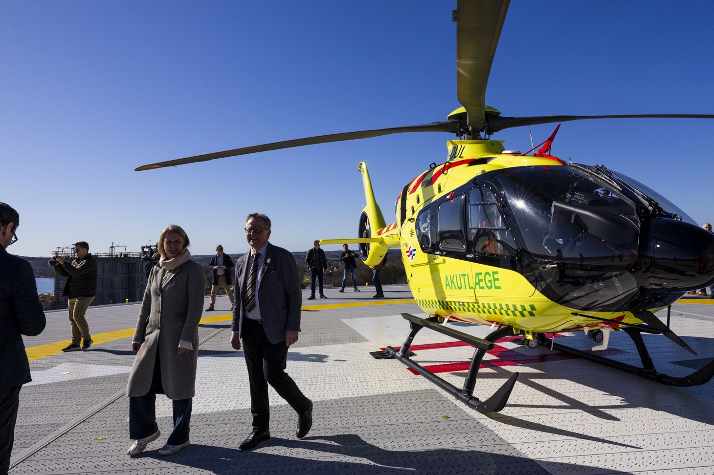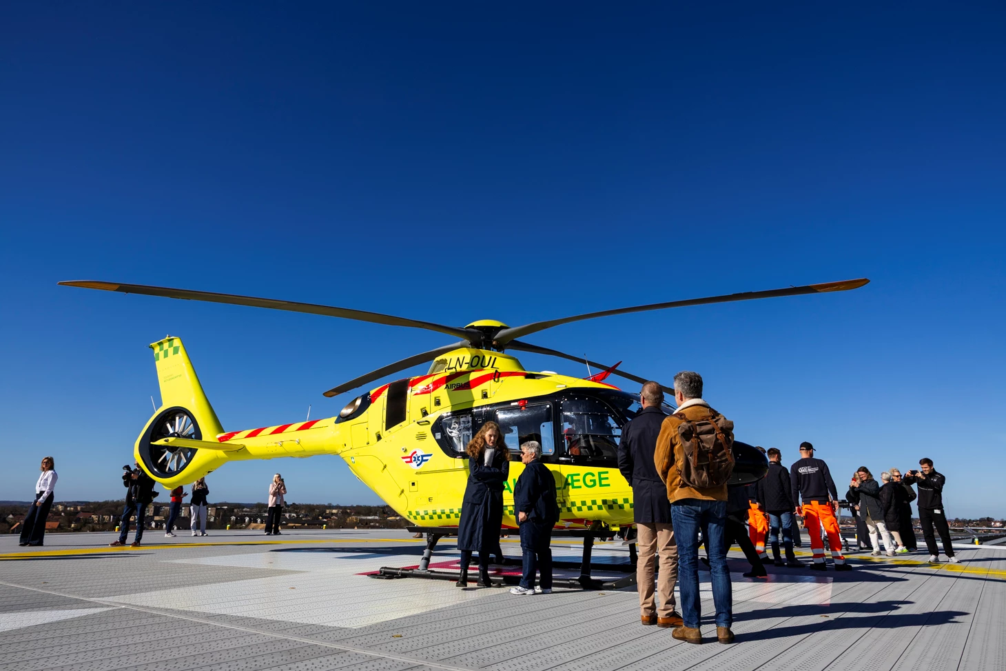 Under en skyfri, vindstille himmel blev Regionshospitalet Viborgs nye helipad tirsdag indviet. Se flere billeder nederst på siden. Foto: Agata Lenczewska-Madsen